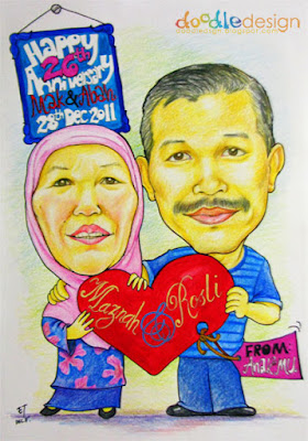 Talking about anniversary, I have just finished two pieces of Couple Caricatures that are meant as belated gifts from a loving sister, Ella... to two of her older sisters' anniversary this year. Thanks for your order Ella dearie!
